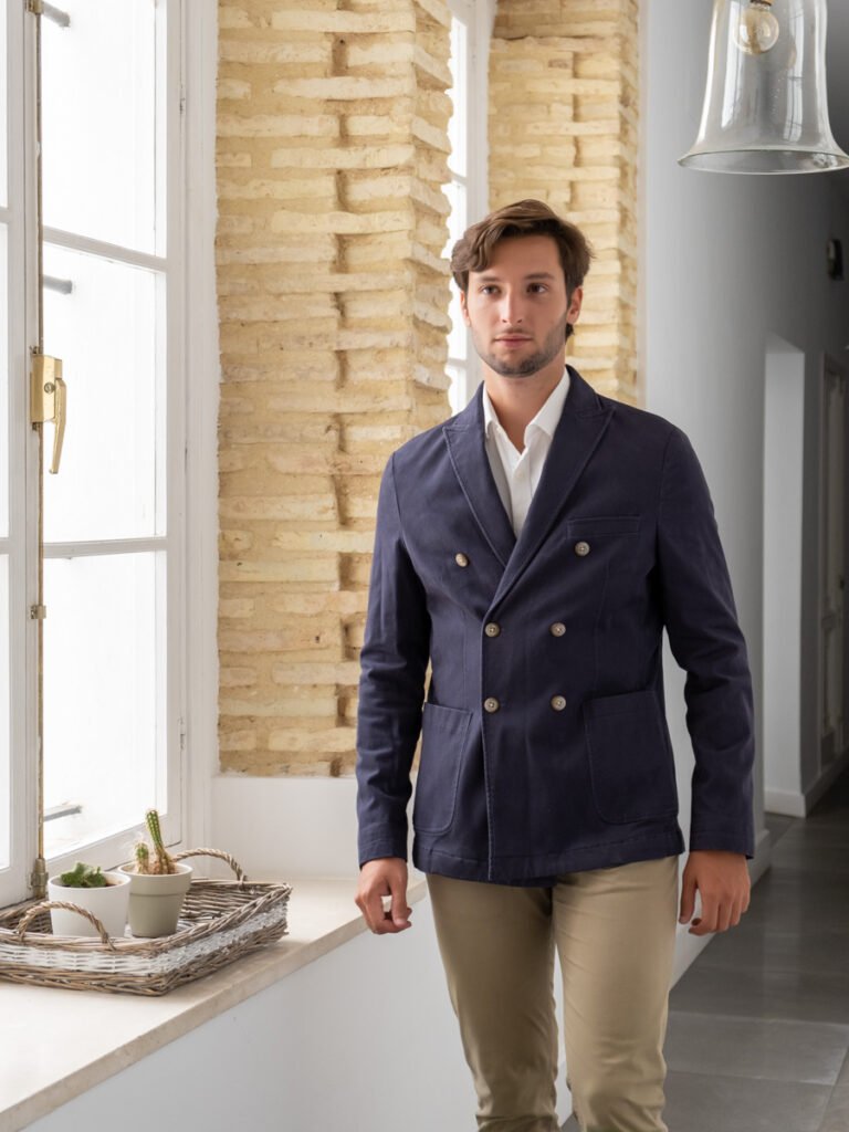 El corte cruzado de estas chaquetas aporta un aire de distinción y formalidad, ideal para ocasiones especiales o eventos que requieren un look pulcro y refinado. A diferencia de las chaquetas de corte recto, el cruce de los frentes crea un efecto visual que estiliza la silueta, añadiendo un toque de elegancia adicional. Además, su diseño suele incluir detalles como bolsillos de vivo y botones forrados, lo que refuerza su carácter clásico y sofisticado.
